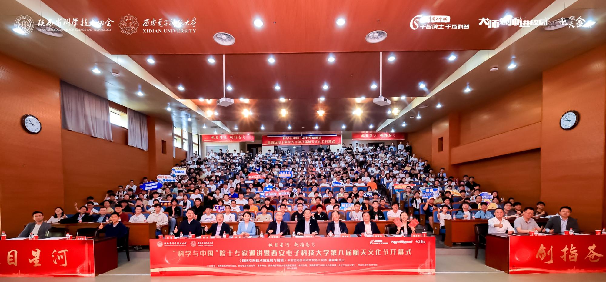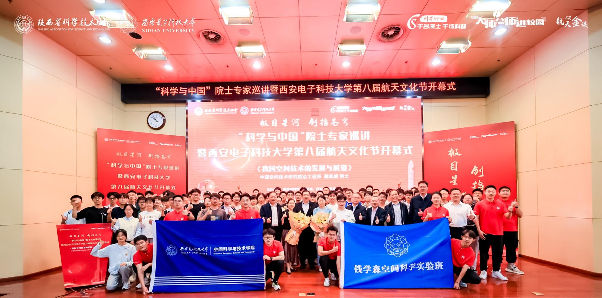 航天文化节开幕式结束后,周志成院士以《空间技术发展与展望》为题作主题报告,他从国际太空发展新动向、我国卫星通信发展历程、空间飞行器总体设计与实践,近期热点及发展趋势等方面为西电师生带来了一堂精彩的“航天金课”。周志成讲述了航天工程背后航天人协作攻关、无私奉献的感人故事,他表示,航天成就的背后是无数个普通平凡的岗位,是埋头苦干的身影,是对航天高风险时刻保持如临深渊的心态。