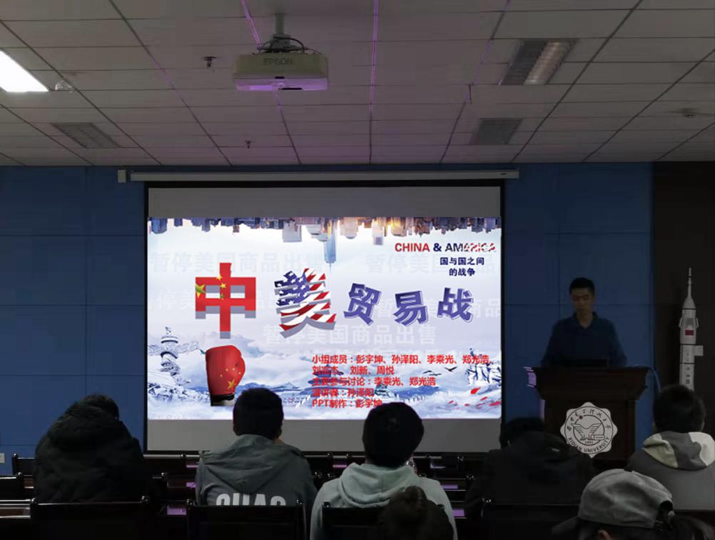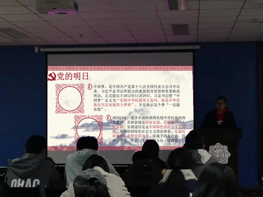 在交流分享中,各小组围绕“十九届四中全会”,“中美贸易战”,“香港问题”,“中国梦”,一带一路”等专题进行了深入讨论。通过线上自学、线下讨论、集中研讨、分工展示等环节,各学习小组团结协作,表现积极,态度认真,针对党章党规、党史、热点时政等多个话题进行深入思考,大胆表达自己的看法与见解,把理论与实际相结合,引得台下掌声阵阵。