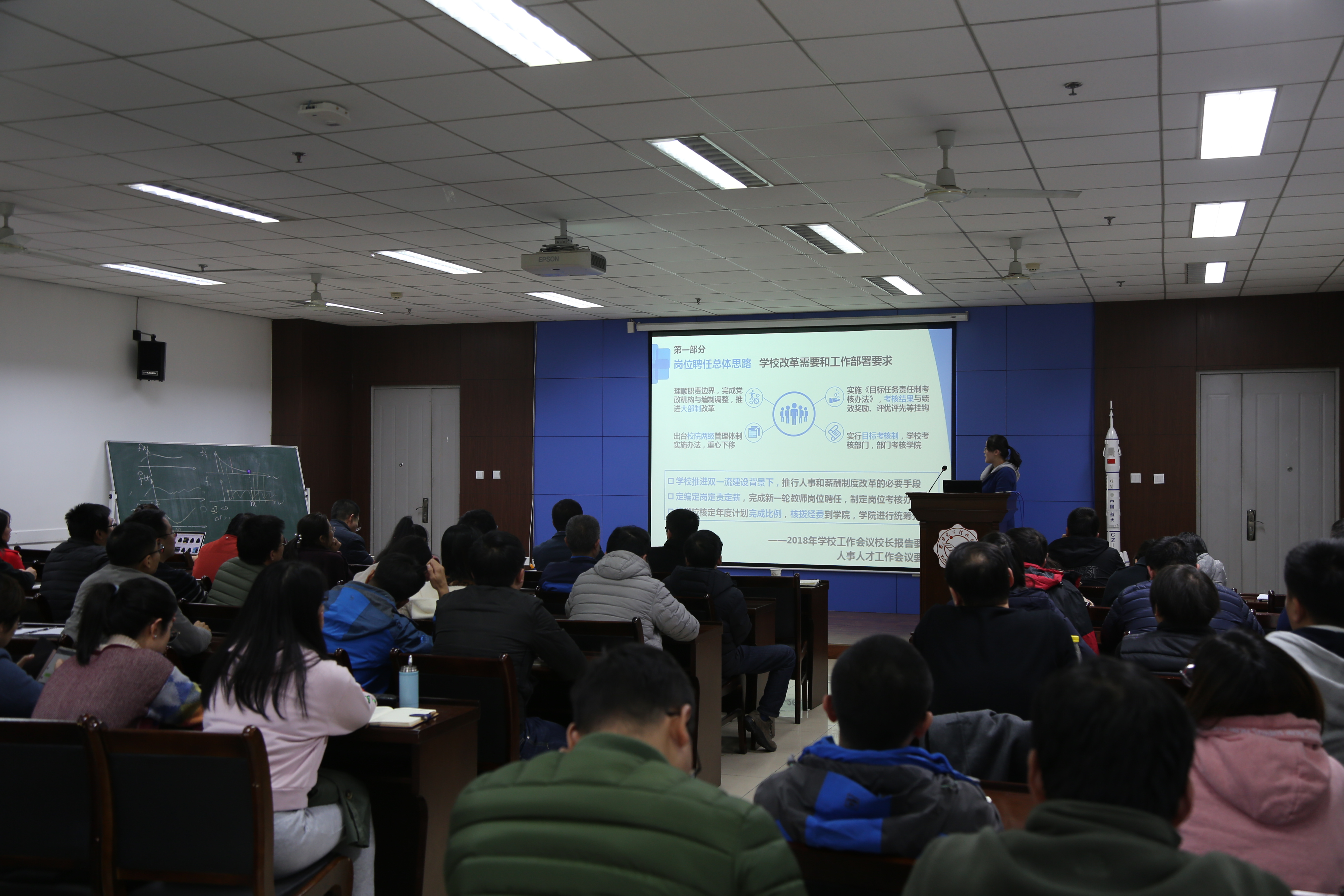 会上,学院执行经理李小平回顾了学院开学以来开展的各项重点工作,结合学校一流建设和综合改革的总体要求对学院下一阶段的工作进行了安排部署。她强调此次岗位职责制订是正常的一轮岗位聘任工作,但更是学校“重心下移、两级管理”等综合体制机制改革背景下推动教师队伍建设和双一流建设发展的重要举措,只有全院教职工充分理解支持学校改革,砥砺奋进,才能实现学院与个体的同频共振。