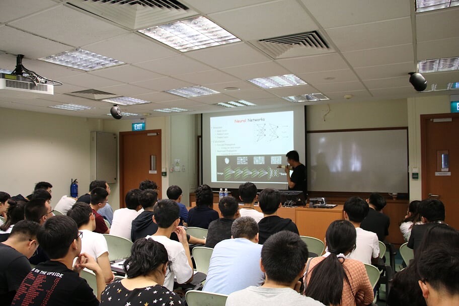 在新加坡国立大学的精心安排下,来自人工智能领域的专家学者为同学们带来了精彩纷呈的学术报告。本次训练营主席IEEE Fellow Li Haizhou教授对语音识别技术进行了回顾和展望,前沿的课堂内容及丰富有趣的课堂互动带领同学们对智能语音技术有了一个全新的认识。新加坡机器人大赛主席Marcelo教授为同学们讲授了AI在智能机器人方面的应用,回顾了工业机器人的发展历程,阐述了智能机器人得天独厚的优势。由麻省理工科技评论评选的35岁以下科技创新青年Feng Jiashi教授讲述了深度学习的最新研究进展,为同学们详细讲解了机器学习的模型构建。新加坡科技研究局资讯通信研究院高级科学家Dong Minghui博士为同学们带来了人工智能和自然语言处理的最新研究成果及解决计算机理解自然语言的关键问题。新加坡Shopee公司首席科学家Pan Yaozhang博士的报告介绍了对大数据科学的最新应用。