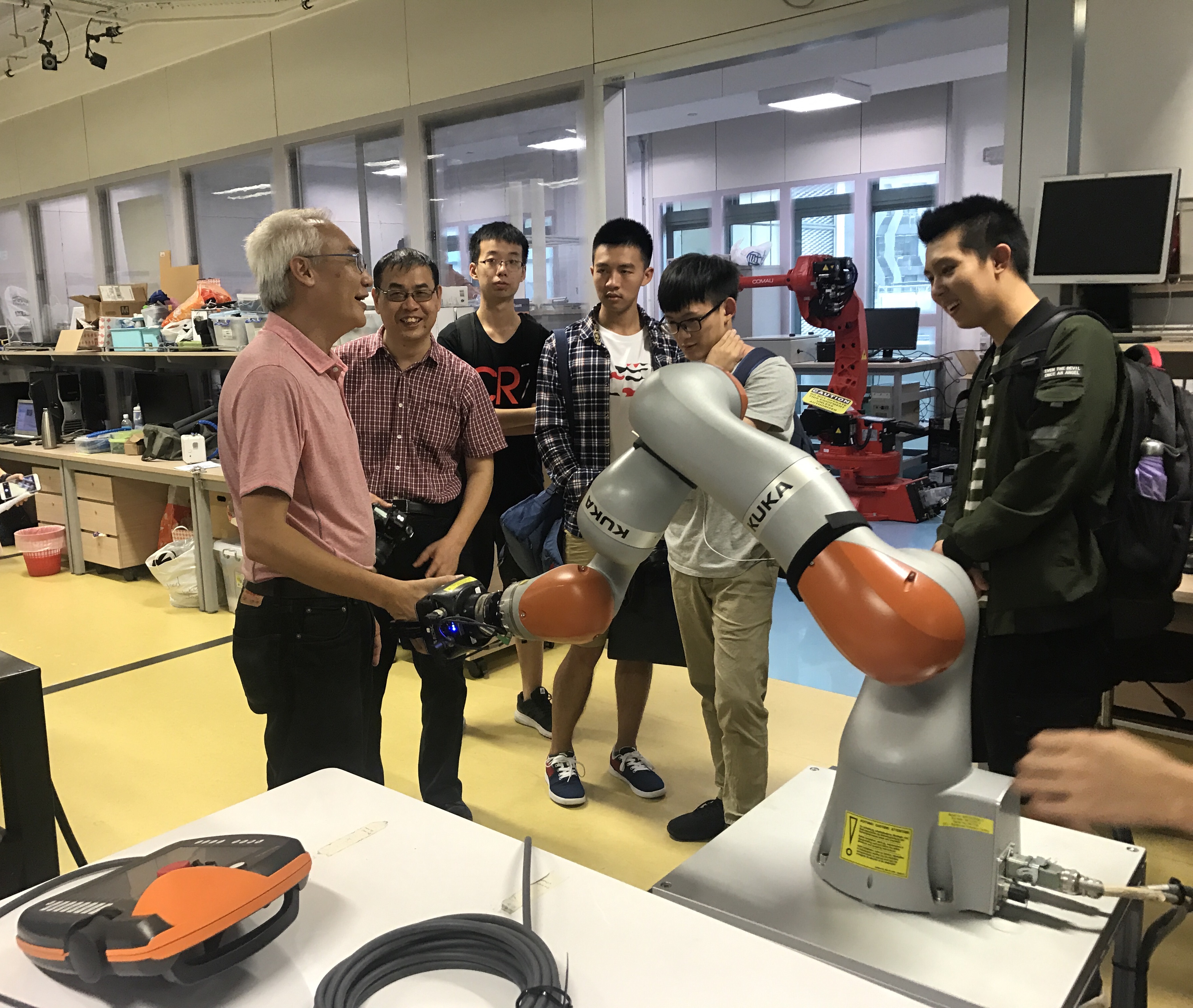 在新加坡科技研究局,同学们参观了研究局的先进研究成果,如旨在节约城市建设所需能源的能够自行发光的特殊材料、超薄任意尺寸弯曲的显示器、为保障员工安全安装在校车上的智能监测设备等。在新加坡国立大学的机器人实验室,与最新各式机器人亲密接触,如能感受拉推力度从而控制抓取的机械臂、握手机器人等。在机器人创业公司中新智擎,了解了市场上不同种类的机器人及其功能,如利用机器人实现人脸识别,智能出入锁等让同学们大开眼界。在新加坡南洋理工大学的弗劳恩霍夫研究所,深入了解体验了AR和VR的最新技术。