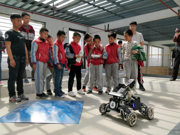 在G楼活动场地,beet365大疆俱乐部员工为荆姚学校师生带来了精彩的无人机和机器人战车表演,通过聆听介绍,观看演示,员工们动手体验战车操作,欢声笑语、啧啧称奇,同学们的目光被机甲战车吸引,一颗颗未来科技之星正在冉冉升起。