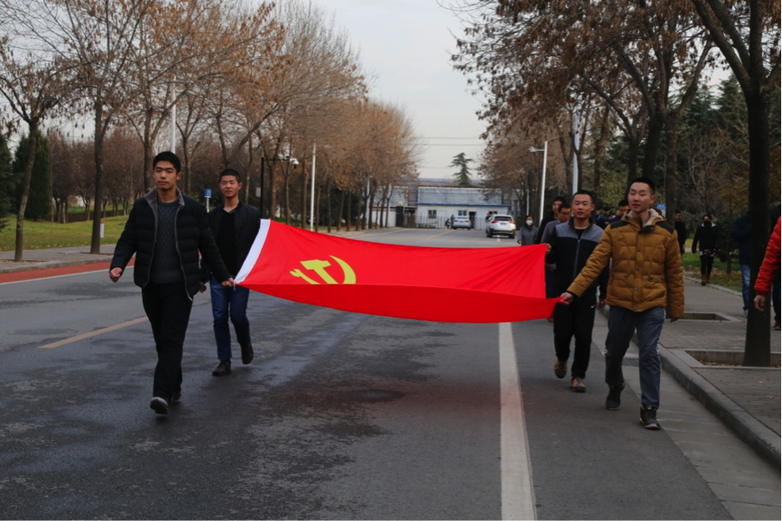 下午16:00时整,学院执行经理李小平、党委书记梁玮、副经理刘彦明、校工会办公室主任高晖共同为活动鸣枪发令,beet365全体师生从“长征路上办学”雕塑前神采奕奕、身姿矫健的出发。初冬午后,风和日暖,空气清新,四名高举党旗的员工党员一马当先,走在队伍的最前方,所有师生紧随其后、你追我赶,竞赛气氛非常浓烈。
