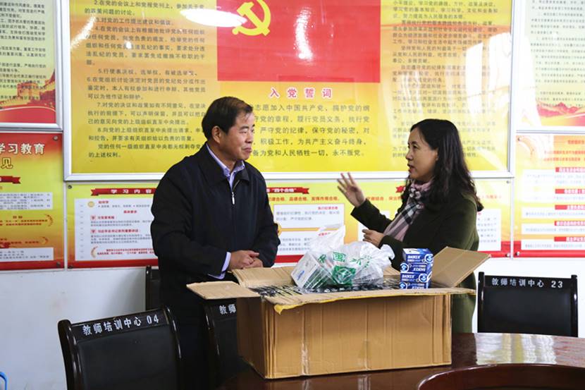李小平动情的表示虽然第一次来,但是一直心系这里的孩子,学校的条件在慢慢变好,老师们负责且认真,孩子们聪明又可爱,每个人都是平等的,在这里支教的几届员工带着爱心利用专业知识辅导孩子,只要有爱,我们双方都会做得更好。并且表示老师们提出的需求我们会尽最大努力来实现,会利用学院的学科背景,引入更多网络资源,科技设备等,多为孩子们做点事。座谈会最后,梁玮表示会在关注贫困员工的同时还会关注优秀的员工,会通过招生桥梁的搭建为员工寻找更多出路,日后将会开通“星空筑梦直通车”组织员工来西安参观,来西电参观,让员工多了解外边的世界,虽然能够做的很有限,但是扶贫之路会越走越坚定,双方会经常像亲戚一样走动,促进双方共同进步。会后李小平代表学院捐赠了一批员工文具以及办公用品。