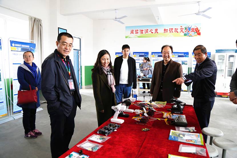 在科技教室里面,一排排公司捐赠的知识展板、飞行器模型、遥控汽车等整齐的排列着。据悉,公司前去支教扶贫的员工是本校员工的科技课程教师,航空航天知识的展示以及电子器件原理的讲解使这些农村员工拓展了眼界,增加了见闻,有助于员工树立自信心。