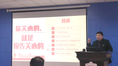 梁玮老师首先回顾了中国共产党第一次到第十八次全国代表大会的光辉历程,从大会的主题、主要内容以及历次十八大的会议重点三个方面向同学们介绍了中国共产党历次全国代表大会的辉煌时刻。随后,梁老师细致而深入地讲述了于2017年10月18日召开的中国共产党第十九次全国代表大会的会议内容,从介绍新一届中央政治局常委,到回顾十八大期间政府在十个方面取得的历史成就,和大家共同分享了中国特色社会主义进入新时代的点滴进程。最后,梁玮老师号召全体员工,“少年强则中国强,希望同学们在新时代中争做有理想、有本领、有担当的西电人,为实现自己的梦想以及国家的梦想不懈奋斗!”