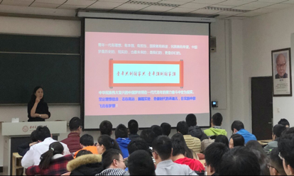 “劝君莫惜金缕衣,劝君惜取少年时。有花堪折直须折,莫待无花空折枝。”姜老师以十九大报告中总书记对青年的殷切希望勉励同学们珍惜大学四年的美好时光,扎实学习科学文化知识,提升自我素质与个人境界,“青年兴则国家兴,青年强则国家强。青年一代有理想、有本领、有担当,国家就有前途,民族就有希望。中国梦是历史的、现实的,也是未来的;是我们这一代的,更是青年一代的。中华民族伟大复兴的中国梦终将在一代代青年的接力奋斗中变为现实。”