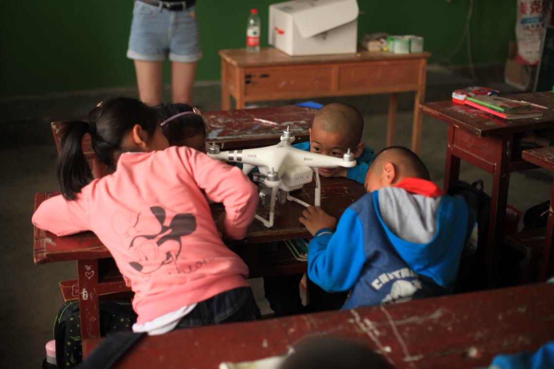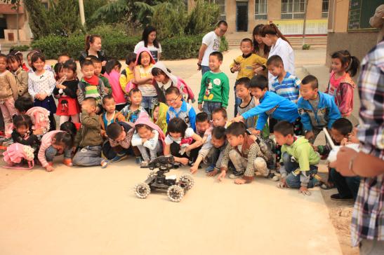 随后公司同学向小朋友们展示了大疆科技无人机和“战车”,并且对有兴趣的小朋友进行手把手教他们如何操作。之后同学们参观了学校,分组和不同年级的小朋友进行了有关学习生活上的交流。看到教室里坑坑洼洼、破旧的桌椅板凳,斑驳低矮的平房宿舍却被孩子们收拾的干干净净、整整齐齐、窗明几净,更是被孩子们天真无邪的笑容和纯净渴望的眼神触动心弦,同学们纷纷表示今后要更加珍惜自己的学习生活条件,并尽自己所能为这里的孩子们多做一些事。不少同学更是留下了联系方式,表示如果有任何需要帮助的地方随时和他们联系。公司的老师们和中学领导、部分老师进行了座谈和交流。