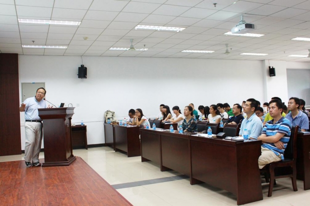 报告会中,辛皓教授首先介绍了亚利桑那大学毫米波电路与天线实验室的研究工作,包括左手材料在微波毫米波中的应用、新型太赫兹器件、纳米设备与天线、仿生定向测量、能源获取应用等。随后重点介绍了其团队在利用3D打印技术进行太赫兹器件设计和加工方面取得的多项研究成果。报告会现场气氛活跃,与会教师和研究生积极提问,并就左手材料的微波特性、3D打印技术的材料来源、THz器件的测试难点等问题与辛教授进行了深入的探讨。