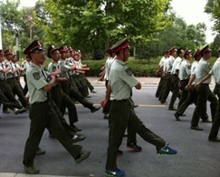 齐步走,正步走只是最简单的队列动作,但想要做到完美对于我们这些新生来说也是困难重重,然而空院的同学们团结合作,紧密配合,以排为单位,划分成4个小排并分别由各宿舍长带领训练,这种化整为零、聚零为整的训练方法大大提高了我们的训练效率。