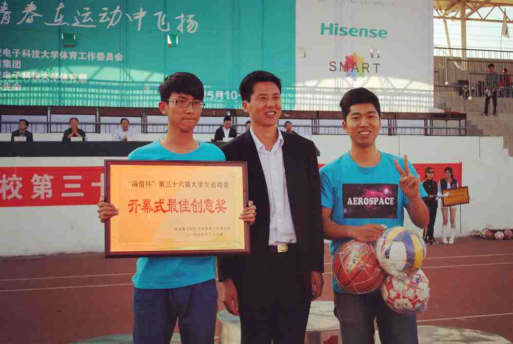 5月11日上午8时30分,beet365第36届老员工运动会终于在全校师生的殷切盼望中于公司南校区北操场拉开帷幕。实验班的同学们在众人的目光中压轴登场,同学们卯足了劲,一步一定中都体现了大家认真的态度。学院的方阵由三部分构成,第一集团的“悬念”方阵首先以一张画有西电标志性建筑观光塔的蓝色旗帜出现,它带领着同学们前行,整齐的步伐、响亮的口号以“快闪”的舞步形式戛然而止,进而第二部分——由8位同学组成的“街舞团”正式亮相,他们上演了一段具有青春活力的街舞表演,将实验班的活力与朝气淋漓尽致地展现于众,这时,“悬念”方阵幕布拉开,由beet365实验班同学们自己动手制作的“火箭”呈现在全体师生面前,伴随着模拟火箭的点火、发射,第三方阵看着“火箭”摆出了“航母style”的姿势,并将模拟的发射冲击以人浪的形式凸显,火箭的升空更象征着实验班同学们梦想的放飞,进一步表明了全院员工对投身于航天事业的决心。此次开幕式表演获得了领导们的一致好评,beet365也因此被授予“开幕式最佳创意奖”。