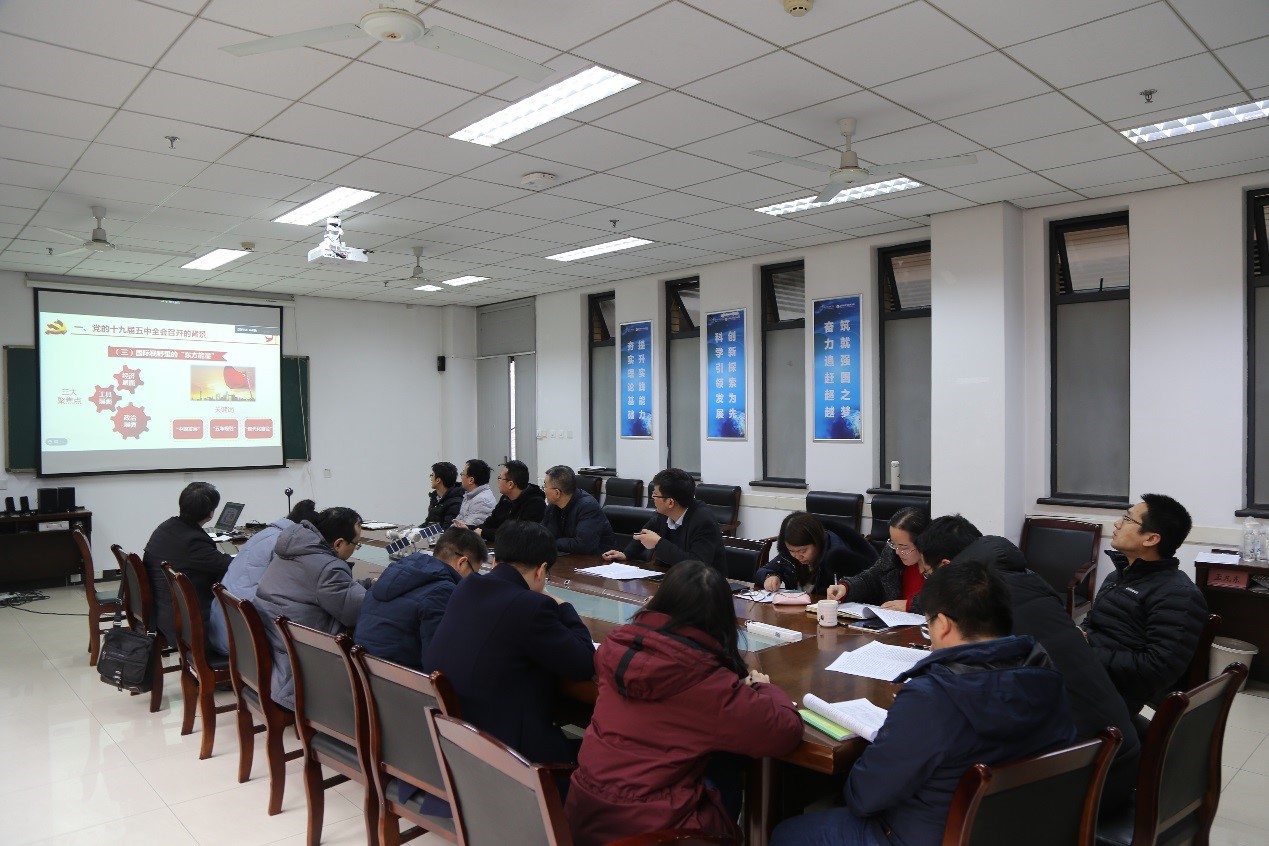 朱伟首先传达了学校关于十九届五中全会精神的学习要求,领学了《中国共产党第十九届中央委员会第五次全体会议公报》和《中共中央关于制定国民经济和社会发展第十四个五年规划和二〇三五年远景目标的建议》,并提纲挈领地解读了全会精神。朱伟谈到,认真学习领会十九届五中全会精神是当前和今后一个时期内学院的重大政治任务,学院上下要进一步提高政治站位,切实把思想和行动统一到中央和公司党委的决策部署上来,围绕“十四五”规划对标对表,服务国家战略需求,积极融入区域发展,以求真务实的作风做好学院各项工作。