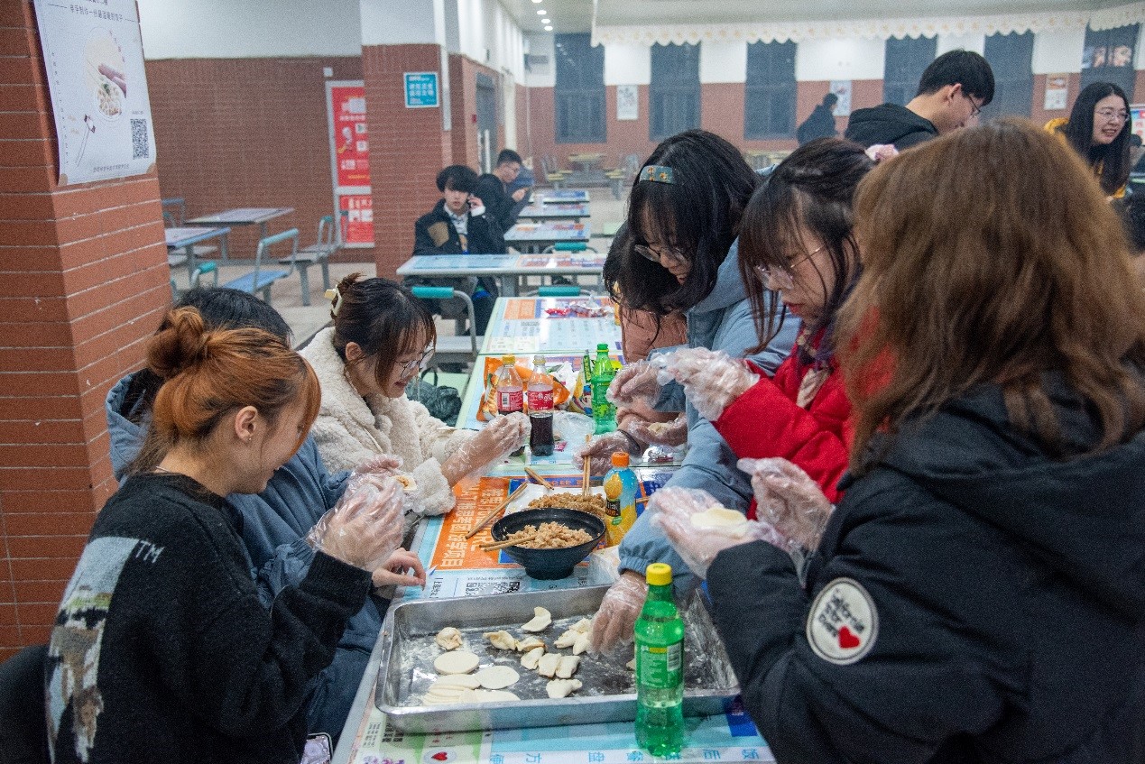 经过一番准备,师生围桌而坐开始忙碌,共同包起象征着“团圆福禄”的饺子,在动手实践中感受节日的氛围。“一个学期下来适应老员工活了吗”、“同学们对于自己专业的课程设置是否满意”、“未来有什么期望和计划”、“平常喜欢什么样的运动”,包饺子之余,学院领导、老师与员工充分交流互动,聆听建议,调研需求,了解员工所思所想,并向员工传达学院的关心和问候。