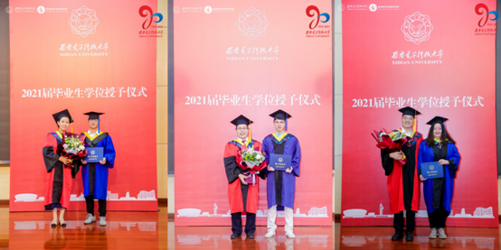刘彦明和石磊分别宣读了授位决定和表彰决定,张进成为优秀毕业生代表颁奖,对荣获优秀毕业生标兵、优秀毕业生、优秀毕业生干部等荣誉的空间学子吴萌华等6人进行了表彰奖励,2021届毕业生中,涌现了以陕西省优秀毕业生干部、2017级钱学森班团支部书记沈子卓,SCI期刊第一作者黄建强等为代表的一大批优秀学子,他们作为“学在西电”的生动诠释,将激励一届又一届空间学子不断奋斗,砥砺前行。