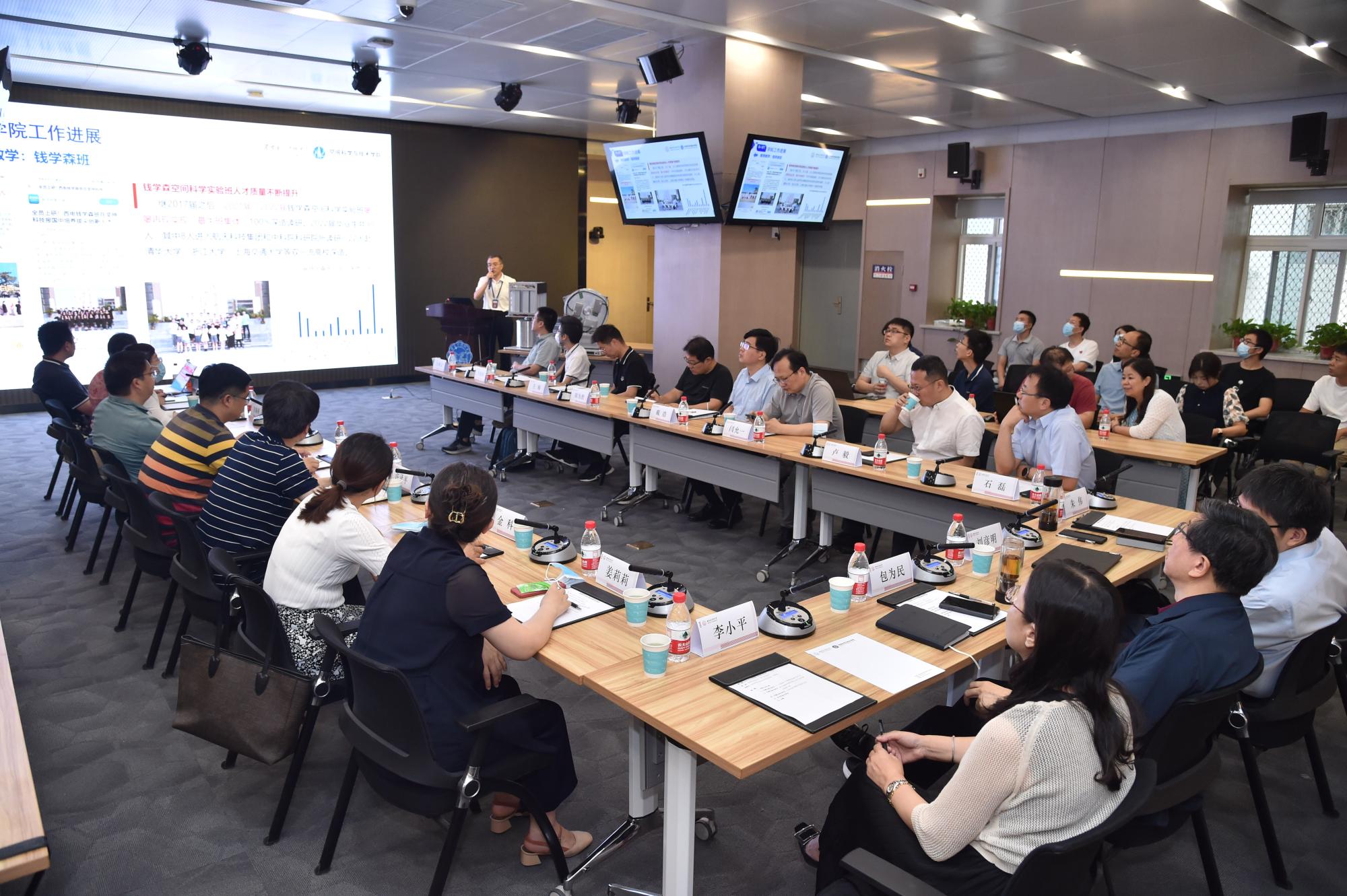 刘彦明首先汇报了学院近年来本科教学、公司产品、科研发展、团队建设、团队队伍等工作情况,深入分析了学院目前面临的本科生源质量下降、拔尖人才培养政策调整、研究生满意度下滑、人才队伍建设短板等问题,并指出学院将多措并举提升专业教学水平,探索升级钱学森班人才培养方案,以产教融合为抓手提升公司产品质量,面向国家重点战略需求谋划重点科研项目,不断优化学院学科专业结构,聚焦学科方向加强人才育引力度,加快推进空间大楼建设。