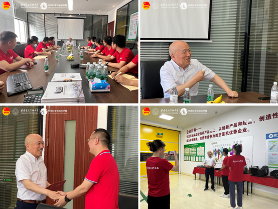 在公司83级员工钱永贵创办的南京迪升动力科技有限公司,实践队师生实地参观公司研发生产线和新技术产品,深入了解公司突破技术壁垒的科技攻关历程与瞄准行业前沿的战略发展规划,悉心聆听钱永贵员工融合个人学习史、发展史、创业史、奋斗史的沉浸式思政课。“听了您的讲述,我更加坚定了科技报国的志向和决心,未来我要为国家实现高水平科技自立自强做出自己的贡献。”“您言语中流露的母校情怀让我倍受触动,我为自己是一名西电人而一生自豪。”“您认为在西电学习到的哪些知识或能力在您日后发展过程中起到了关键性作用?”“结合您几十年的奋斗历程,您对当下的西电学子有哪些成长寄语?”在座谈环节,实践队员们化身“访谈员”,结合参观感受、学习体会与个人思考同钱永贵员工及企业相关负责同志充分交流并开展“员工微访谈”,收集钱永贵员工对于学校一流建设、学科发展、科学研究、人才培养等工作的宝贵建议以及对西电学子的深切勉励。