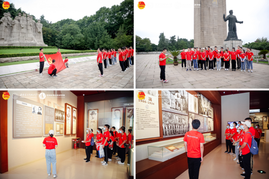 “1927年4月12日蒋介石发动反革命政变后,邓中夏坚决主张在南昌举行武装起义,并受中共中央派遣于1927年7月20日到九江,与李立三、谭平山、叶挺、聂荣臻等开会,分析形势,提出建议……1933年9月21日黎明,在雨花台下,邓中夏高呼‘中国共产党万岁!’口号,为共产主义事业英勇地献出了自己的宝贵的生命。牺牲时,年仅39岁……”。在雨花台烈士陵园,实践队员、学院博士生党支部副书记、2021级博士研究生张泽葳通过“党史微宣讲”与现场师生共同回顾了新民主主义革命时期大批共产党人和爱国志士抛头颅洒热血的壮烈历史。烈士就义群雕前,现场师生党员重温入党誓词,再度坚定为党和人民事业拼搏奉献的理想信念。