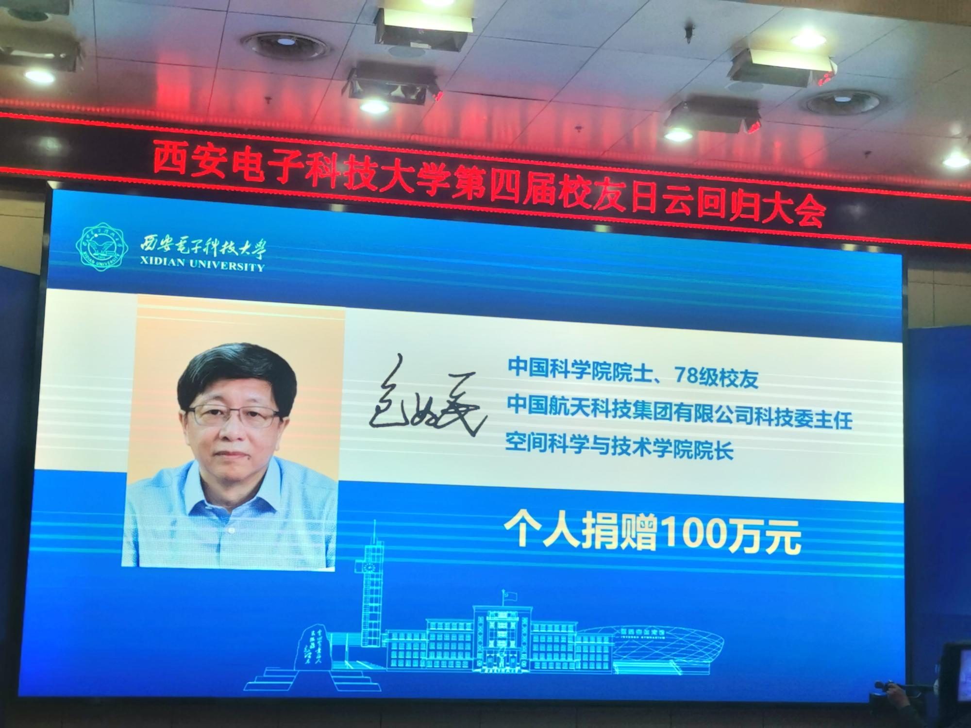 他表示,航天精神和西电精神相融相通,其核心内涵是爱党爱国、艰苦奋斗、服务人民。建校91年来,学校始终与国家发展同频共振,为我国的国防事业培育和输送了一大批优秀人才,希望“探索基金”的设立,能够激励西电师生在空间科学领域不断开展创新性探索,也希望更多的员工关注和支持母校的发展,让西电精神薪火相传。