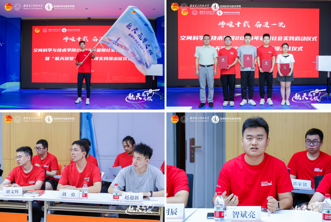 实践团出征仪式暨行前读书会上,2022年暑期社会实践队员代表刘勇分享了自己随“航天筑梦之旅”实践队前往江苏南京开展社会实践的经历与收获,“2022年的南京之行,我和伙伴们在员工企业聆听前辈成长故事增强身份认同,在遗迹展馆探寻历史脉络坚定文化自信,在革命旧址重温入党誓词明确青年担当,在航天院所探寻科技前沿立志航天报国。这是一次收获满满的社会实践活动,更是一段全方位提升自我的成长经历,希望大家能够在今年的社会实践活动中有所见、有所闻、有所思、有所获。”2023年暑期社会实践队员代表杨婷介绍了自己参加“航天筑梦之旅”成都绵阳队社会实践的行前规划,“此次社会实践我们将前往四川大学空天科学与工程学院和西南交通大学力学与航空航天学院交流学习,我将在交流过程中充分展现西电青年朝气蓬勃的精神风貌,并通过交流了解两所院校在航天领域的研究进展,为自己未来投身航天事业拓展知识维度。”仪式上,校团委副书记华俊文向实践团师生寄语“在聆听与观察中经受教育、在交流与见习中增长才干、在寻访与躬行中做出贡献”并向实践队员代表谭博文授旗。公司党委副书记卢毅向2022年优秀社会实践队员颁发荣誉证书并鼓励他们将小我融入大我,在理论与实践的紧密结合中锤炼品德、提升能力。公司党委书记朱伟在讲话中表示,希望团队师生在社会实践的“思政课堂”中赓续红色根脉、体悟时代脉搏、传承西电精神、探寻航天前沿,让青春在建设航天强国的生动实践中绽放绚丽光彩。