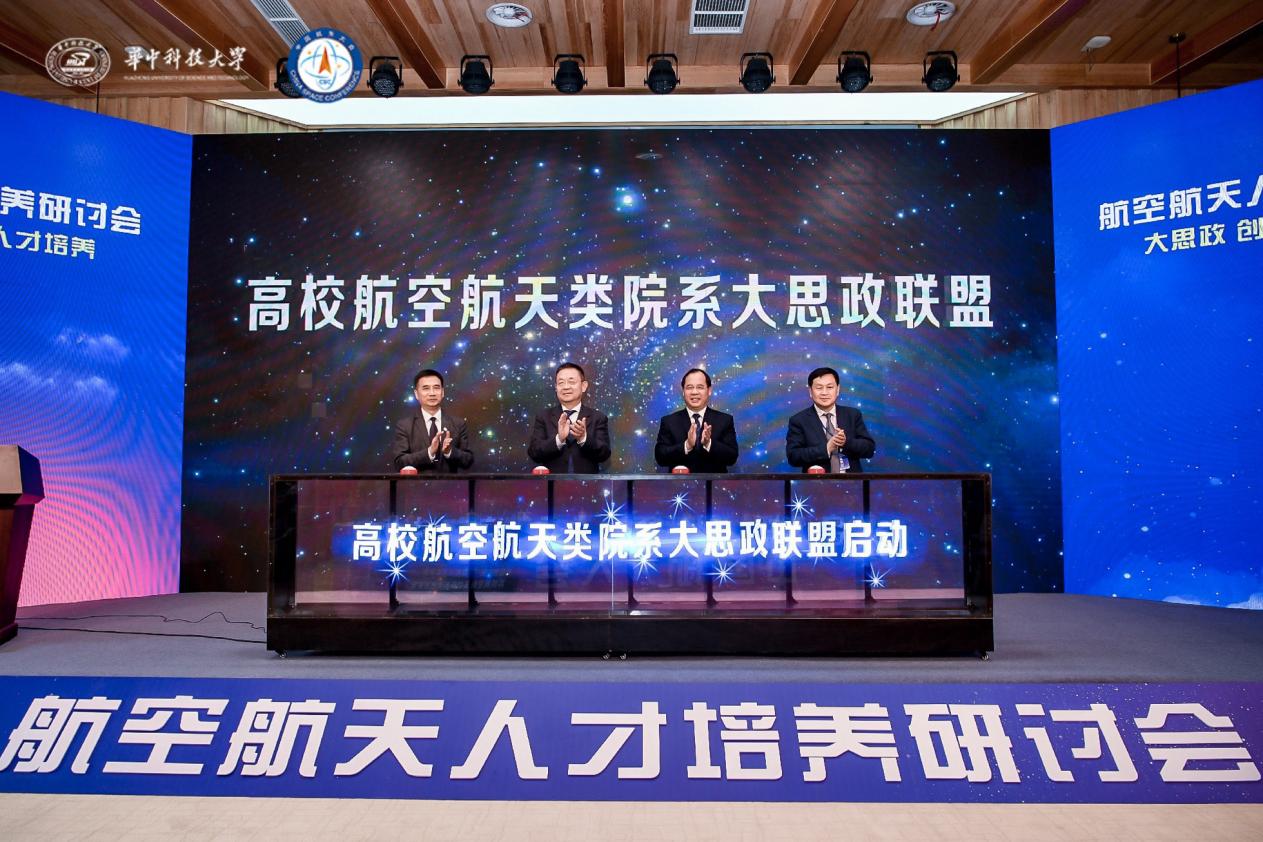 李平、王一然、廖文和、张耀共同为高校航空航天类院系大思政联盟揭牌,华中科技大学航空航天学院被推选为联盟首任轮值理事长单位。会上,各参会高校围绕航空航天人才培养的思政教育工作和思政体系建设展开深入交流,共同探讨从多个维度深化育人体系建设,贯彻落实思政育人政策,加强融入航天精神教育,促进员工全面化、多样性发展。