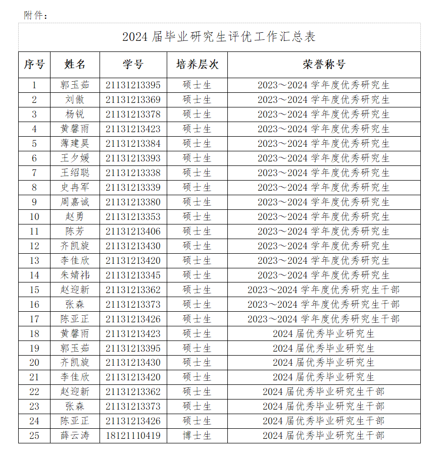 各位同学: 经个人申报、资格审查、评议小组评审等流程,现将公司2024届毕业研究生评优结果予以公示(名单见附件),如有异议请于公示期内反馈。 公示期为三个工作日 邮箱:zhangchenhui@xidian.edu.cn 电话:029-81891034 beet365 2024年4月30日