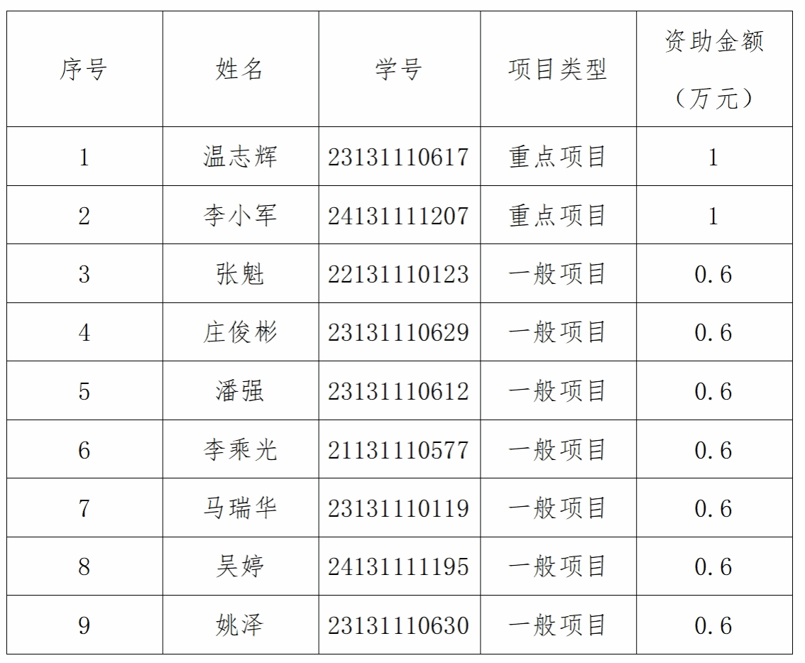 经个人申报、学院组织专家评审等流程,确定资助项目9项,详见下表: