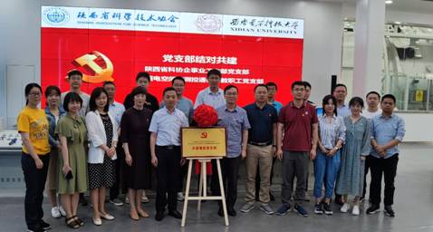 主题活动上,西电beet365测控通信系教职工党支部和陕西省科协企事业工作部党支部结对共建,陕西省科协企事业部部长、党支部书记朱炜和西电beet365副经理、测控通信系教职工党支部委员石磊签署支部结对共建协议并揭牌。