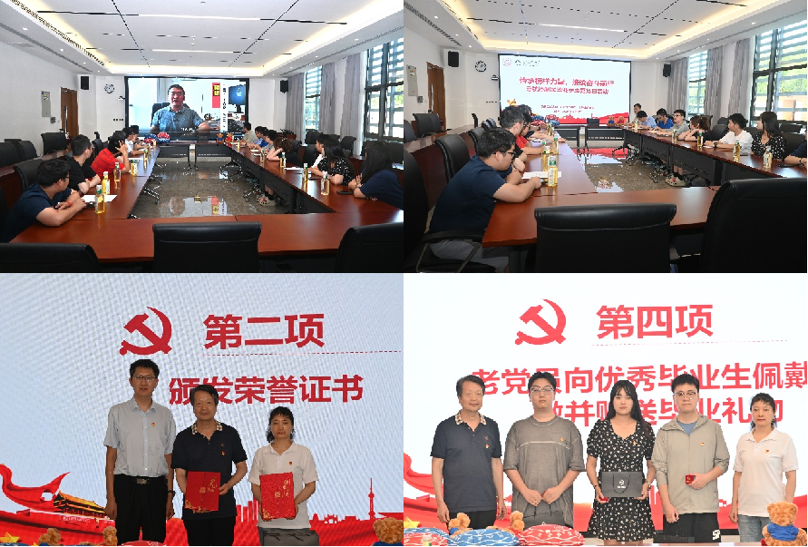 许录平与孙景荣老师为2024届优秀毕业生党员代表佩戴了校徽,并赠送了寓意深远的毕业礼物。这份礼物不仅仅是对他们过往努力的肯定,更是对他们未来旅程的美好祝愿,希望他们能在未来的学习和工作中继续发挥党员的先锋模范作用。毕业生党员代表纷纷表示,未来将继续以高标准要求自己,以老党员的优良作风为榜样,学习他们严谨的工作方法和踏实的做事态度,将老党员们的教诲融入自己的工作和生活中,不断追求卓越,为党的事业贡献自己的青春力量。