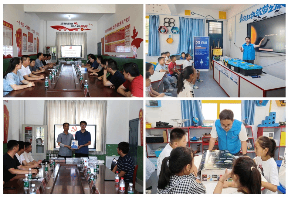 依托“青年红色筑梦之旅科创小屋”,学院“星空”宣讲团成员李旭向现场30余名荆姚学校员工讲授“星空梦想课程”,她借助学院师生自研的天体物理教学软件,模拟了地球所在太阳系的临近星系、银河系在宇宙中的位置以及月亮围绕地球公转的过程,带领现场员工共同置身于满天星河之间,帮助员工认识和了解宇宙与航天。讲解过程中,她将日常学习科研中掌握的理论转化为中小员工耳熟能详的话语,有效引导当地员工了解科学、热爱科学,增强科学素养,拓展知识体系。