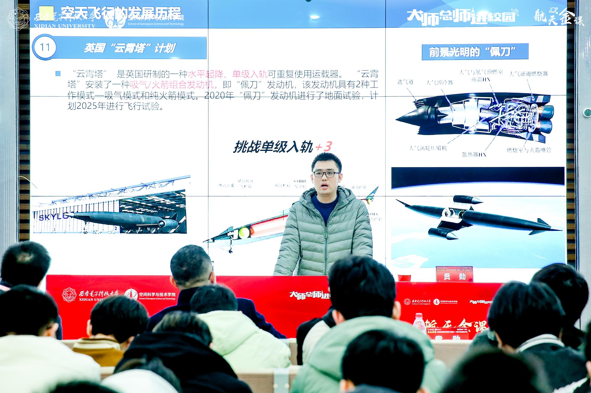 “21世纪以来航空航天技术的快速发展掀起了空天飞行研究热潮,将推动实现空天航班、全球快速运输等工程应用。”贲勋特别强调,加快推动空天飞行器技术发展,人类实现自由进入太空、建设太空信息港和地外天体基地的梦想便不再遥远。中国目前正在研制空天飞行器“腾云工程”,将在2025年完成技术验证飞行试验,2030年完成两级入轨空天飞行器研制并实现商业运营。课程最后,贲勋勉励同学们怀抱远大理想,不断提升专业本领,为祖国空天事业发展作出西电贡献。