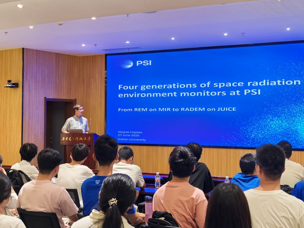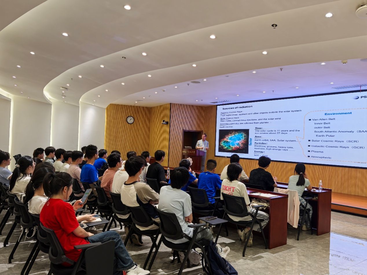 Correspondents Zhai Liangkai, Zhang Jinxin To enhance students' international perspectives and global competence, during the university's 2025 International Innovation Practice Week, Associate Professor Zhang Jinxin from the School of Aerospace Science and Technology once again invited Professor Wojtek Hajdas from the Paul Scherrer Institute (PSI) in Switzerland to teach a two-week, all-English course titled "Space weather and modern electronics - between applications and hazards" for undergraduates. On the afternoon of June 27th, Prof. Wojtek Hajdas also delivered a lecture entitled "Four Generations of Space Radiation Environment Monitors at PSI". The lecture was attended by 40 undergraduates from the Qian Xuesen Class of 2024 and some graduate students.